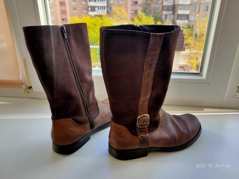 Тип взуття: Чоботи Чоботи дитячі високі Clarks шкіра+замша р-р 35 європейський, довжина вн. устілки 22 см. Стан добрий, без дефектів. Довжина 27 см.
