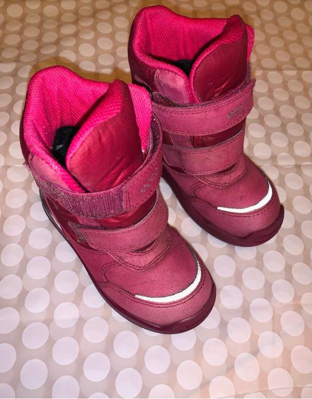 Тип взуття: Черевики Торг Зимові черевики для дівчинки Ecco рожевого кольору. Стан гарний. Розмір — 26.
