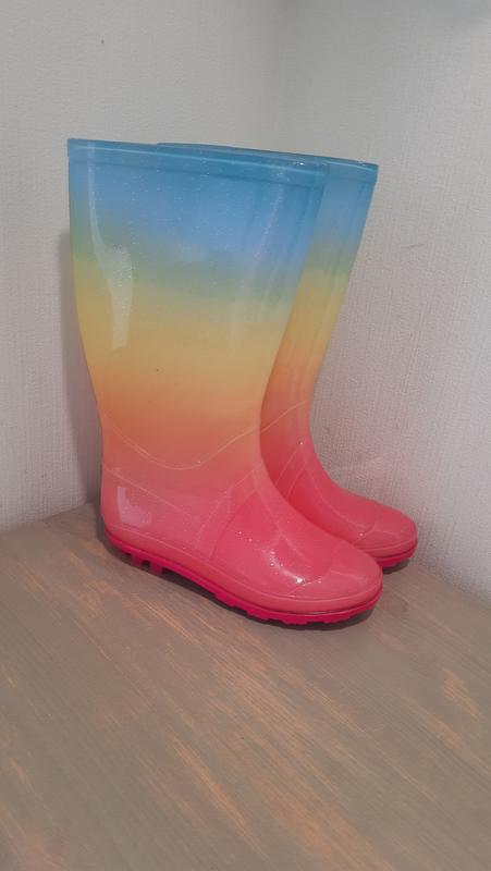 В идеальном состоянии резиновые сапожки на девочку 34р. Длина стельки 21.7см, высота сапога 30см. Стан нового.