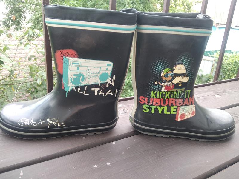 чоботи без утеплення, устілка 21,5см. без тріщин, не протікають. Mалюнок за сюжетом мульта Фінеас та Ферб (Phineas and Ferb