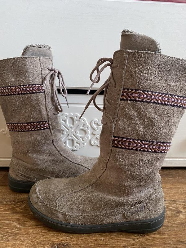 Продаем наши фирменные зимние сапоги Американского бренда Teva , не секонд и не сток. Размер 34- 21,5 см стелька Высота от пола 27 см Натуральная замша, внутри натуральный мех. Полностью целые, Молнии работают отлично, подошва в идеале. Не промокают.