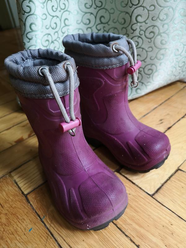 Резиновые сапоги. 23 Размер. Стельку не возможно достать, поэтому не могу точно сказать сколько см. Внутри овчина. Поэтому теплые. Хорошо подходят на мокрую холодную погоду. Мы носили ранней весной и осенью. Ножки в тепле и сухие.