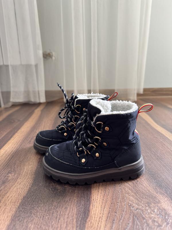 Демисезонные утепленные сапожки от некст, размер 23, удобные, мягкие, легко обувать на ножку и регулировать объем за счет шнурков, слегка потертый перед, можно закрасить.