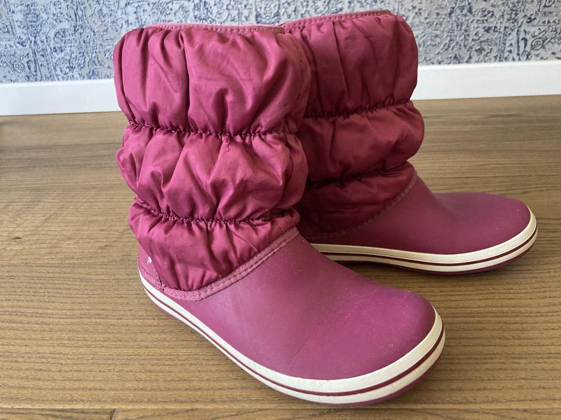 Продаю дуже гарні чоботи Crocs (оригінал), розмір w7 на стопу 22-22,5 см. Стан прекрасний, див.фото. Колір темно-рожевий або малиновий.