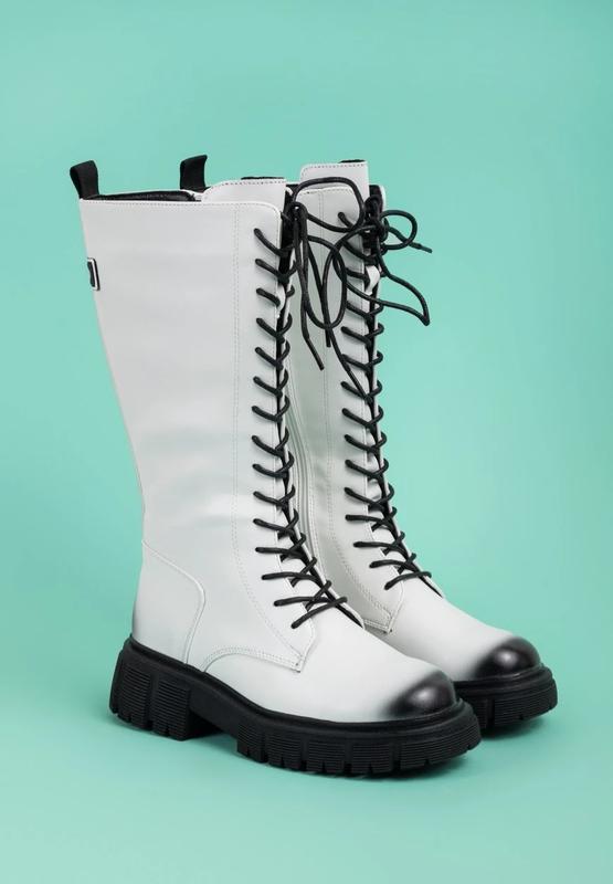 Сапоги для девочек Материал верха - экокожа Утеплитель байка Стелька - кожа, байка, супинатор есть Подошва ПВХ Высота 31,5 см Высота Подошвы 4 см 33-38 р