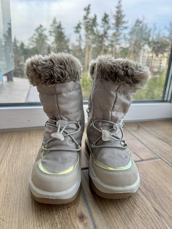 Дуже класні термо чобітки. Дуже теплі, але не парять. Стан нових. Купили вкінці зими, коли були в Німеччині і раптом вдарив сильний мороз. Тепер вже виросли, не встигли поносити. В магазині додатково ще обробляли водовідштовхувальним засобом. Гарно миються, не промокають, штучне хутро лиш для краси, одягаються зручно, підходять на високий підйом.