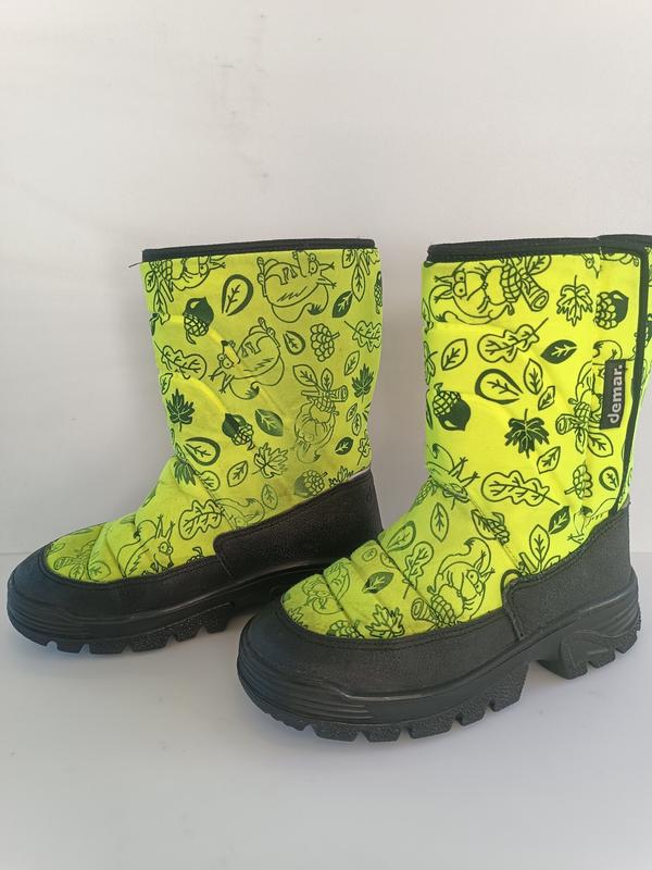 Детские зимние сноутсы DEMAR Hannu Тканевый верх проходит специальную противоугрязевую и влагоотталкивающую отделку. Подошва - прочная, легкая, износостойкая, гибкая, теплоизоляционная из полиуретана. Высококачественный экологичный утеплитель мягко и надежно сохранит тепло во внутренней поверхности сапожков. Стелька - теплая, сменная, не сворачивается во время носки. Утеплены натуральной шерстью. Сверкающий элемент – для безопасности ребенка на дороге в темное время суток. Износостойкие материлы, водоотталкивающие. Липучка Velkro. Цвет: желтый с черным рисунком. Идеальны для зимних игр и прогулок.