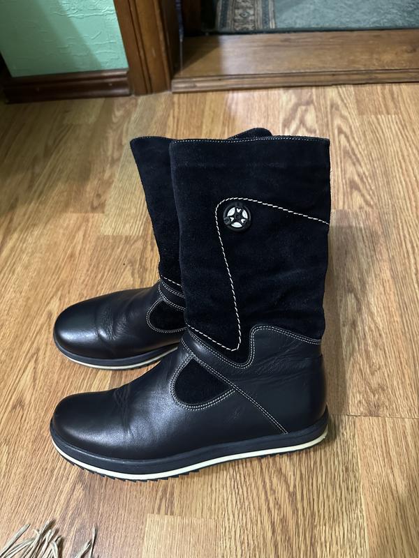 Утеплені шкіряні на дівчинку. Указаний розмір 35. Довжина устілки взуття 23,5 см, висота 26,5 см.Утеплювач вовна. Взуття обов'язково сподобається вашій дівчинці. На всі додаткові питання відповім. Дивіться також інші мої оголошення. Є багато іншого одягу.