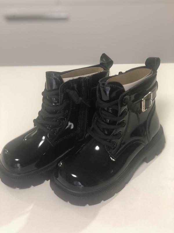 Сапожки для девочки демисезонные, лакированные, декорированы серебряной фурнитурой, с замочком, легкие