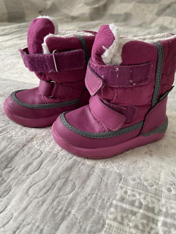 Зимние сапожки в хорошем состоянии. На фото видно потертость. Размер 21, мы носили и раньше. Очень легкие и удобные. Длина стельки 13,5 см
