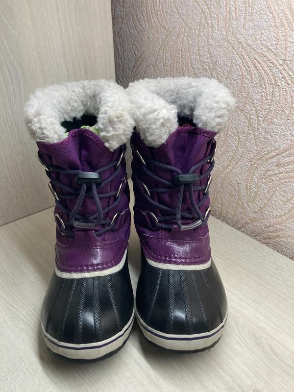 Продам зимние сапожки Sorel 32 размер на девочку. Б/у, но состояние отлично, такие как на фото. В середине валенок, снаружи имеют мембрану waterproof, так что хорошо выдерживают влагу. Валенок чистый, не сбит. Хорошо фиксируются на ножке. Длина стельки ориентировано 21 см.