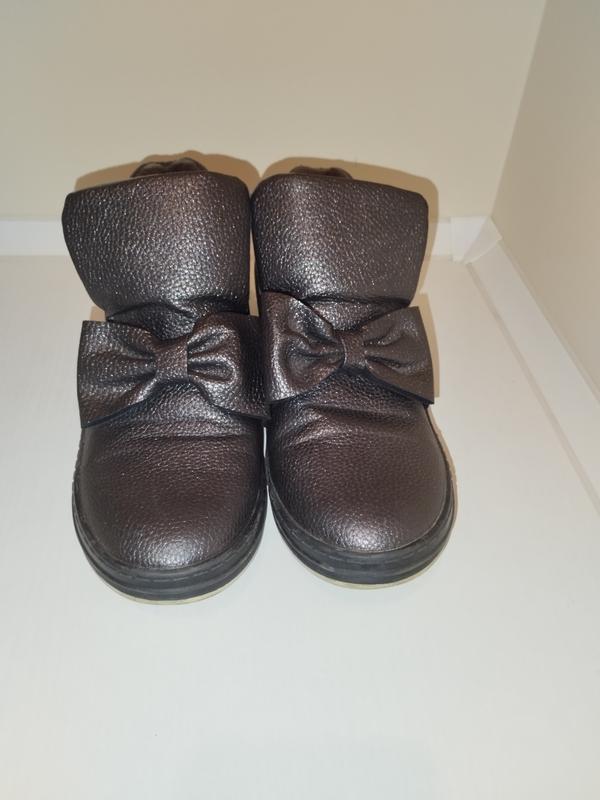 Осенние сапожки коричнево-бронзового цвета, в отличном состоянии. По наборке 37р. стелька 23.5см. На флисе. На правом есть небольшой нюанс - маленькая едва заметная заусевшая заусеница. Есть на последнем фото приближена.