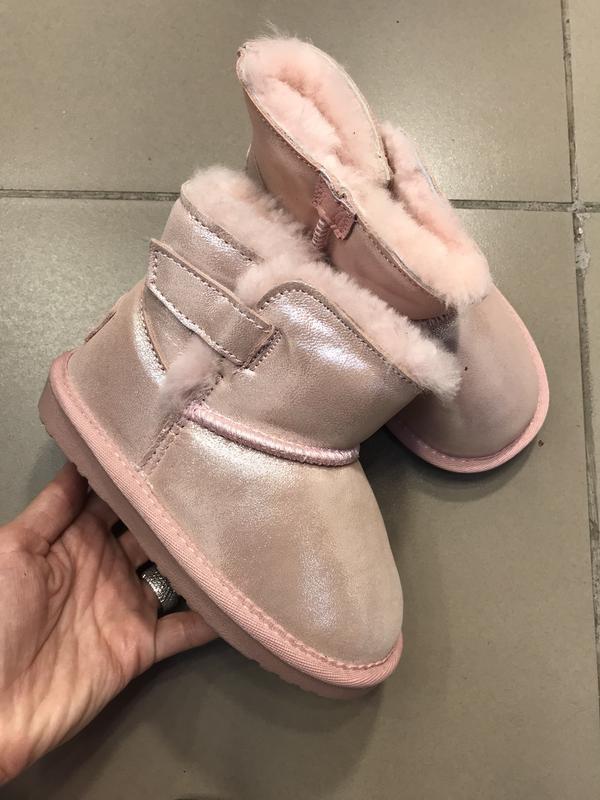 Нежные Детские угги выполнены из натурально-замши с пропиткой блестки и утеплены комбинированным материалом- вередине искусственный мех, а к верху по ножке там, где липучка, натуральная овчина! Размер один 26 Стелька не вынимается.промеревшая 16 см