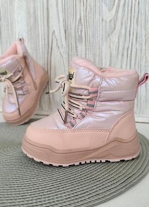 Неймовірно ніжна модель дутиків для дівчаток. Легенькі, дуже теплі Верх- якісна еко шкіра+водовідштовхуюча тканина (плащовка). Застібка-блискавка, регулюється шнурками. Детальні заміри надам🌷