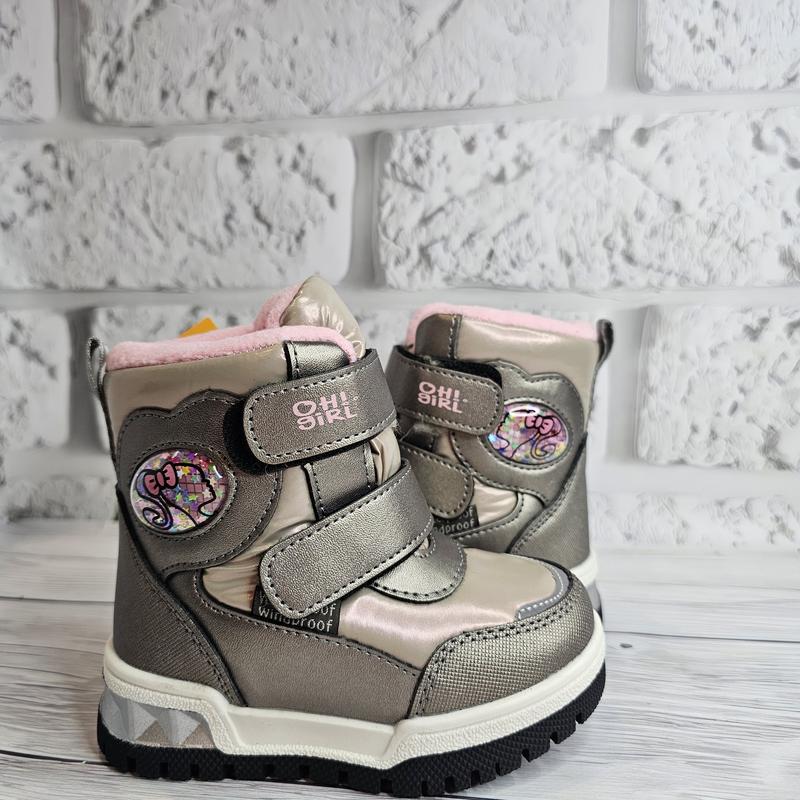 Зимние ботинки для девочек, теплые и удобные. На липучке.