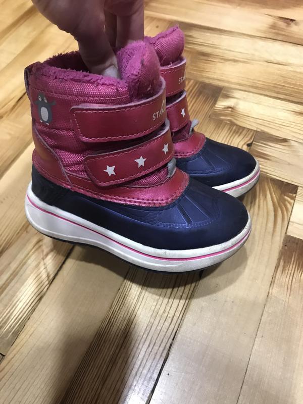 У гарному стані, демісезонні, також носили в теплу зиму. на липучках (містять добре), дуже зручні, не перше наше взуття цієї чудової фірми. Розмір 23, на ніжку приблизно 14-14.5 см. Один нюанс, трохи потріскалася тканина біля липучки, показала на фото, якщо тільки переглядати, на функціонал абсолютно не впливає