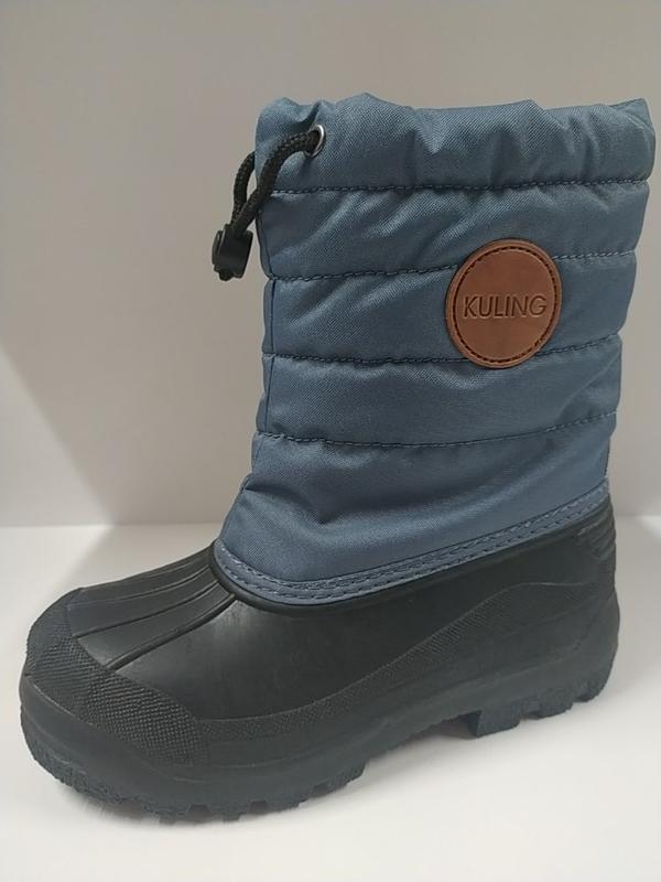 Низ резиновый гаш. Верх водонепроникна дихаюча тканина . В середине полностью утеплены искусственным мехом. Стелька вынимается.. Подошва не скользит. Верх на утяжке. Есть светоотражающие детали. Размер 31 длина стельки 19 см Размер 30 - 18 см