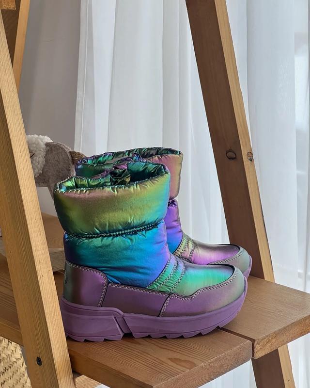 Материал - непромокаемая плащевка и кожзаменитель ( внутри - набивная овчина ) Удобная застежка на липучке Подошва:пенка, износостойкая резина. Цвет: как на фото р 23 - длина стельки 14,5 см р 24 - длина стельки 15,5 см р 25 - длина стельки 16,5 см р 26 - длина стельки 17,3 см р 27 - длина стельки 17,9 см р 28 - длина стельки 18,4 см