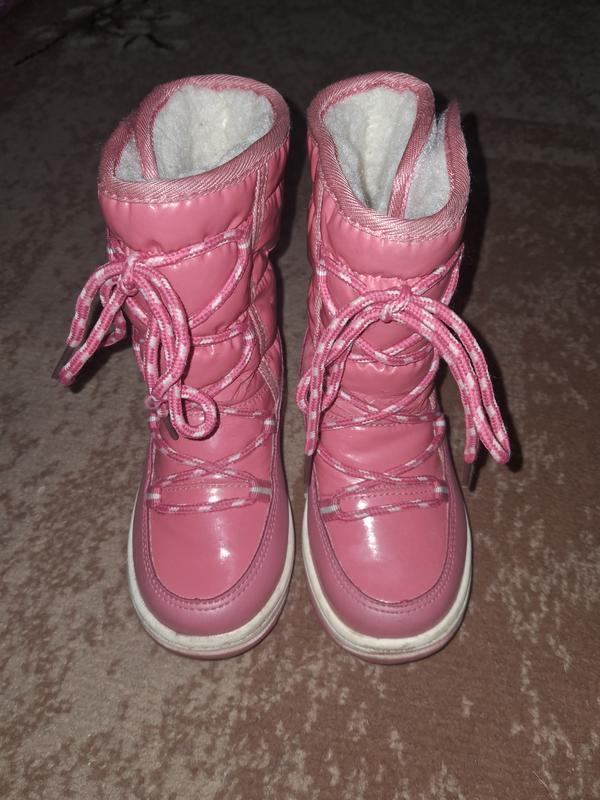 Теплые сапожки.Стан восхитительный является нюанс на 2х посредних фото.Застегиваются на липучки.Стелька 16.5см