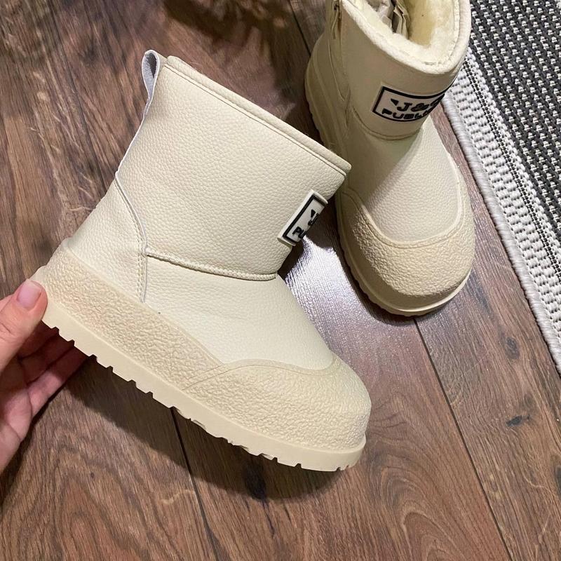 Стильна зимова модель угг Снаружи качественная эко-кожа прочная подошва Носочек защищен от сбиваний Внутри густой теплый мех (75% овчина) Есть боковая застежка светлый беж 32 - 20,5 см 33 - 21,1 см 34 - 21,7 см 34 - 21,7 см 35 - 22,4 см 35 - 22,4 см 36 - 23 см 37 - 23,6 см Цена п 850
