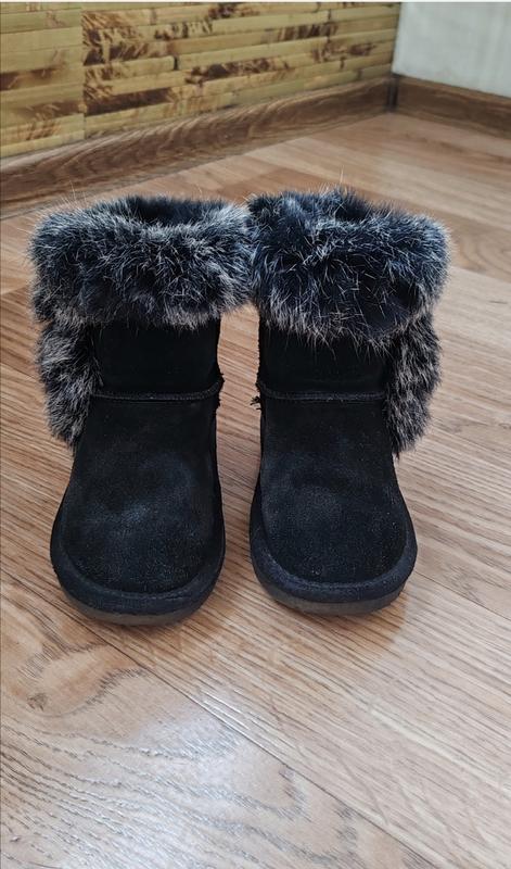 Теплые, зимние, натуральные угги с мехом кролика. Качественные, выглядят супер. Ножка у ребенка была теплая и сухая. Очень классно выглядели под меховая лосины. Относили один сезон, стали замалы. В очень хорошем состоянии. Хутро натуральне-кролик. Смотрятся "дорого-богато" 😜. Р. 28. Стелька 18 см.