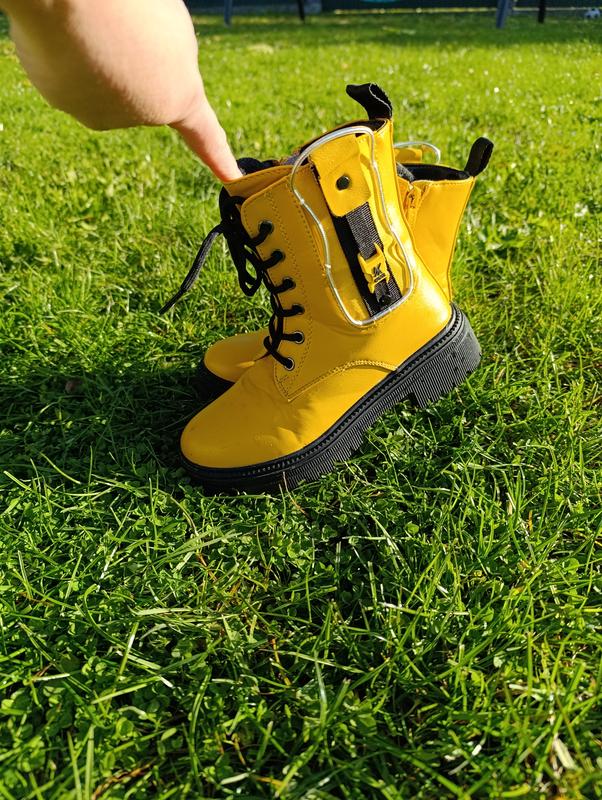 Сапожки для девочки, внутри утепленные байкой. Осенние. По стулу 20см. Цвет желто-горчичный.