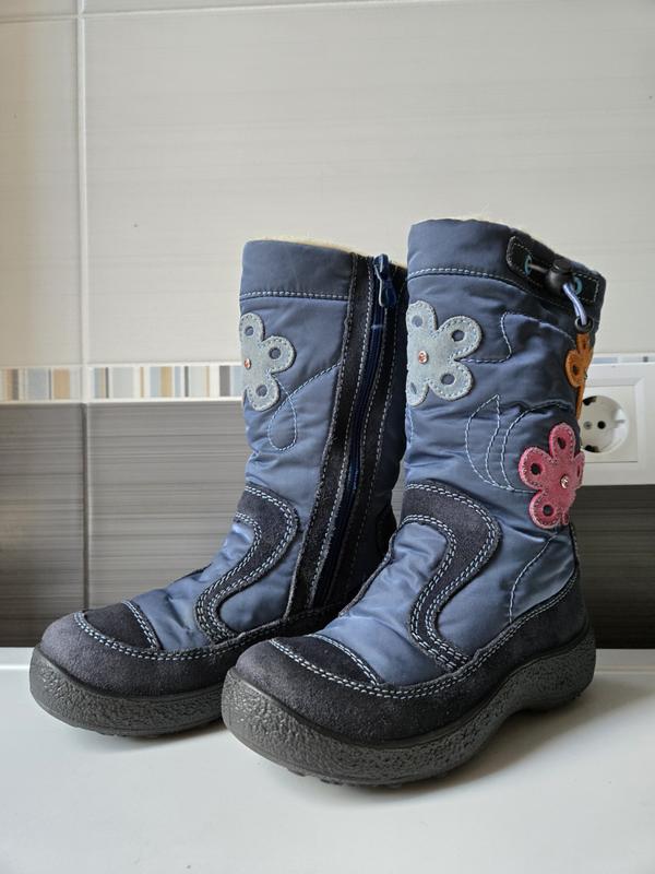 Чоботи дитячі Floare Kapika kapiTex на дівчинку зимові в чудовому косметичному стані. Вологозахищені високі мембранні чоботи, підкладка з натурального овечого хутра, затяжка-гумка зверху для оптимальної посадки та вітрозахисту, застібка-блискавка з розширювачем для комфортного зняття, пара дуже тепла, легка та комфортна. У носінні пара була сезон. Характеристики Стать: жіноча Колір+декор: синій із різнобарвними квітами Сезон: зима Розмір: 28 Матеріал верху: текстиль, замша Матеріал внутрішньої частини: овече хутро Материал подошвы: пенополіуретан
