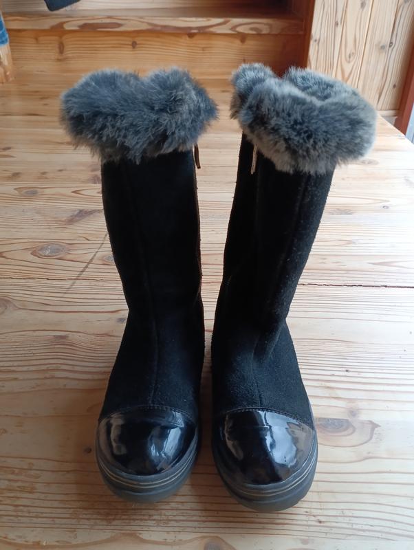 Черные зимние теплые замшевые сапоги на девочку,размер 29, длина стельки 19 см, утепленные натуральным мехом