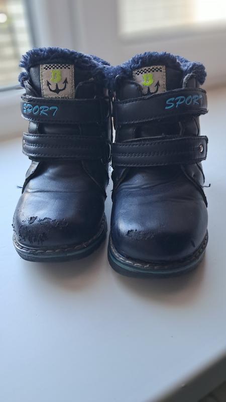 Симпатичние зимние ботиночки для Вашей малышки размер 27 стелька 17 см. Состояние в целом отличное, немного сбиты носки ( на фото видно), густой плотный мех, на липучке и змейке, добротная тракторная подошва, прошиты! Цена чисто символическая.