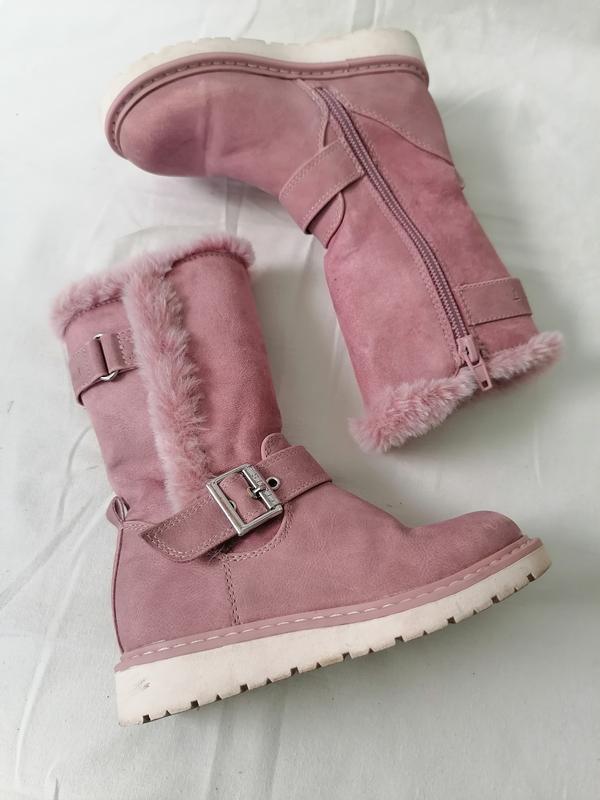 Классные сапожки на ровной подошве. Дымчато-розовый цвет, отделка искусственным мехом. Материал - искусственная кожа под нубук, верх - текстиль под замшу. Внутри утепление, похожее на натуральную набивную шерсть. Немного взбиты носики, но только краска, не материал. Написанный размер 26 Длина стельки 17 см Высота сапога сзади 17 см Полуобхват сверху 11 см На все вопросы с радостью ответят, при необходимости пришлю дополнительные фото и замеры. ✅Подписывайтесь на страницу, регулярно добавляю обновочки. ✅Ставте ❤️, чтобы не потерять понравившуюся вещь и не пропустить акций предложения. ✅Постоянным клиентам скидки 🤗
