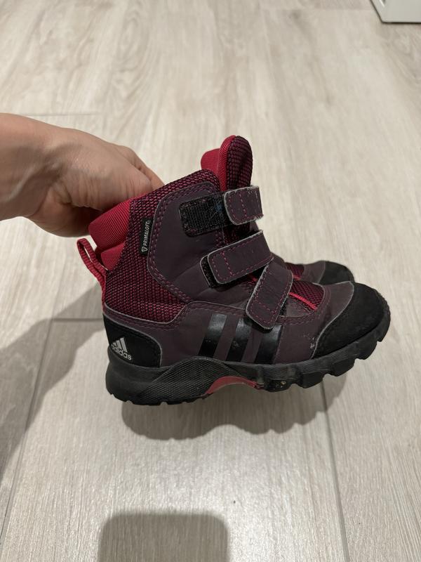 Детские термо-сапоги Adidas, подходят на холодную осень - теплую зиму. В целом состояние хорошее, есть незначительные потертости и незначительные заломы, но на ношение не влияют. Липучки держат красиво. Очень удобные для ребенка, легко надевать. Размер 25. Замеры стельки добавили на фото.
