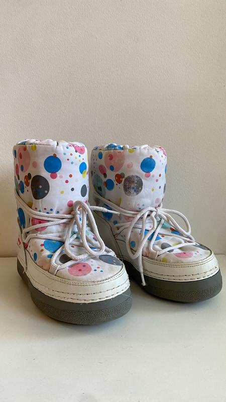 Moonboot для дівчинки, дуже теплі та зручні. Стерся принт від прання у пральній машині, на фото вказано. Інших дефектів немає. Довжина устілки 18-18,5 см. Відправка📦 зручним для Вас поштовим оператором. Оплата замовлення через «Безпечну оплату», попередня оплата на 💳 або післяоплата з передплатою за доставку 150 грн. Якщо у Вас виникли питання чи потрібна додаткова інформація та фото, пишіть💌