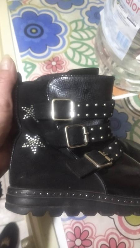 продам сапожки,сзади искусственный замш , спереди искусственный лак, со стразами и пряжками, застегиваются на молнию, внутри байка, сезон деми, чуть сбиты носки, можно подкрасить особо не видно, еще можно побегать, размер 29, в одном нет стельки, отдаю дешево, состояние норм
