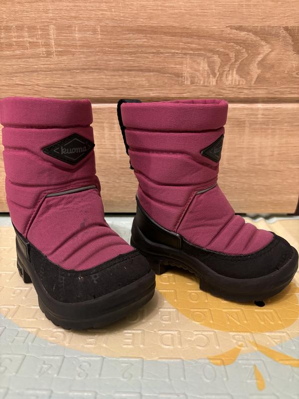 Putkivarsi — самая популярная модель детской обуви Куома. Теплая, легкая и прочная. Так легко надеть, что даже маленькие дети могут это сделать сами. Шерстяная подкладка.Посадка ножки просторная, гибкая подошва амортизирует удары. Верх сапога водо- и грязеотталкивающей ткани. Можно стирать в стиральной машине! Размер 22.Стелька около 13,5 см. Все целое,стан красиво.Один дефект есть небольшие пятна, на фото видно.Цена 320 грн