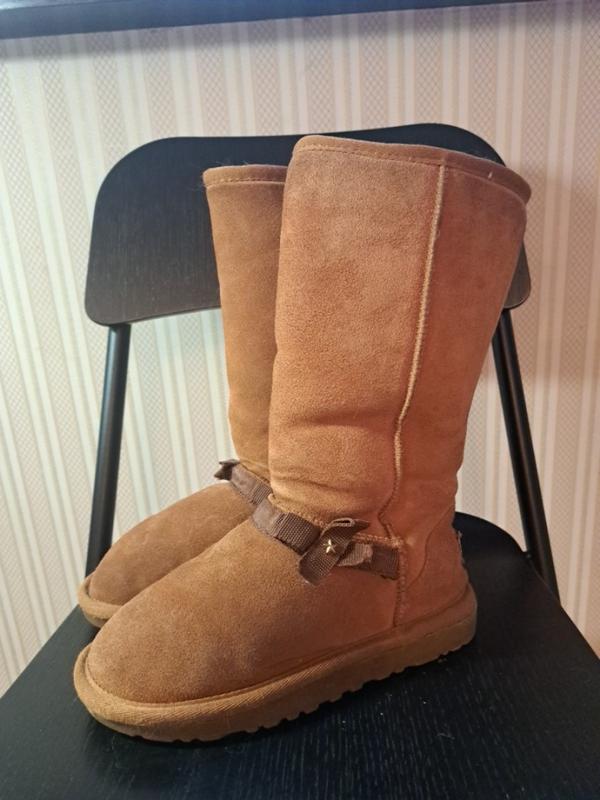 Після одного сезону та однієї дитини. Загалом стан дуже гарний, потрібно трохи почистити, та обробити спреєм. Верх - натуральна замша, всередині штучне хутро.
