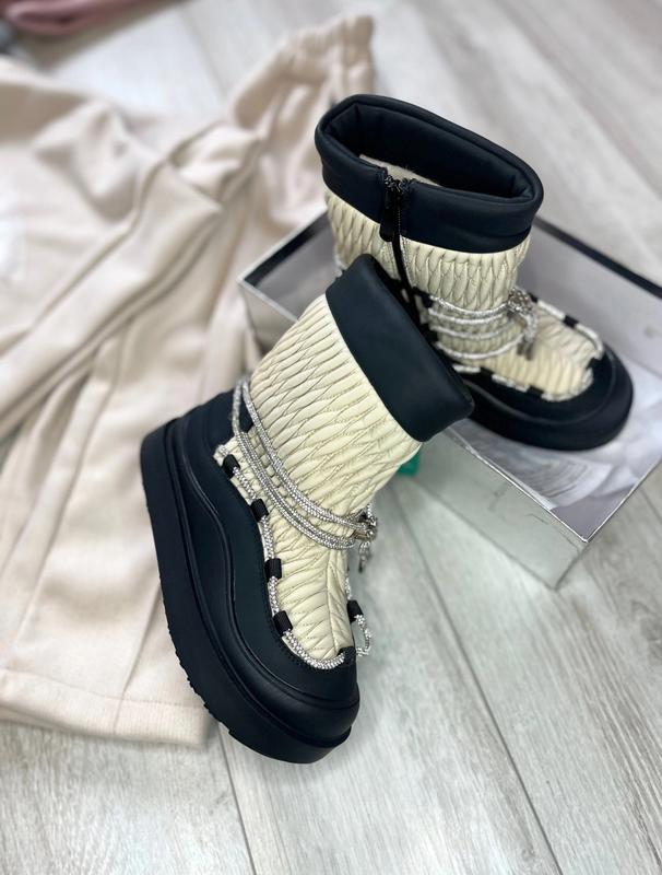 В наличии 🐬 Очень модная❄зимова трендова моделька 💫Новинка!! С блестящей шнурком утяжкой, что шикарно смотрится!⭐️ Верх качественная плотная экокожа Утеплены густой овчиной (75% натуральная ) Застежка :молния сбоку и шнуровка (регулировка полноты) Подошва плотная, морозостойкая, легкие по весу Плотна пʼяточка 💎 светоди Стелька внутри в см: Р.27-17,5 см-2 пари Р.28-18,2 см-2 п Р.29-19,2 см-3 п Р.30-19,6 см-4 п Р.31-20,3 см-1 п Р.32-21 см-2 п