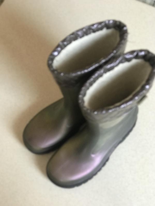 Резиновые высокие сапоги с утеплением серого цвета с розовым переливом