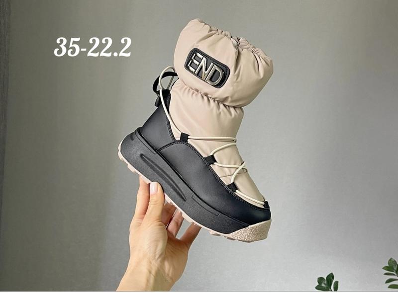 Дутики в трендовом цвете зимняя модель для более старших девочек Дизайн супер Снаружи качественная плотная плащевка Высокая прочная подошва Внутри густой мех Есть боковая застежка Выглядят на ножках невероятно лена 35 размер 22,2 см