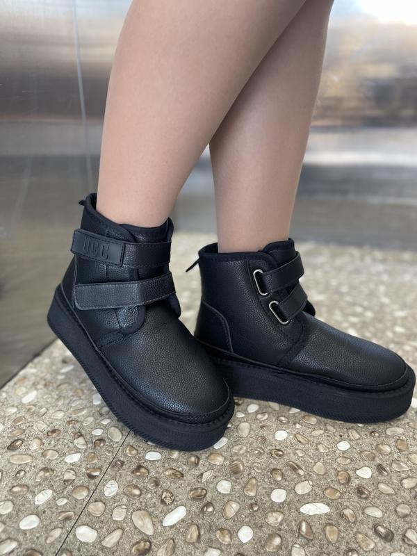 Виконані з натуральної шкіри; - Об'ємна широка підошва; - Присутні зручні застібки липучки; - Утеплені натуральним хутром. Заміри устілки, см. Розмір 38: 24,0 см. Розмір 40: 25,0 см