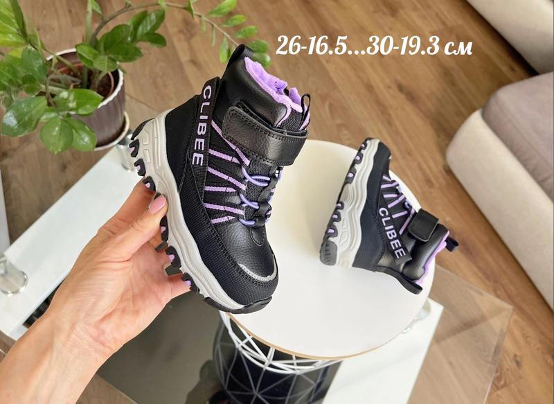 Зимние ботинки из новой коллекции ТМ Clibee Сочетание цветов Теплые и качественные Верх качественная экокожа. внутри овчина (60%) Фиксация молния, липучка, шнуровка -резинка 26 размер 16.5 см