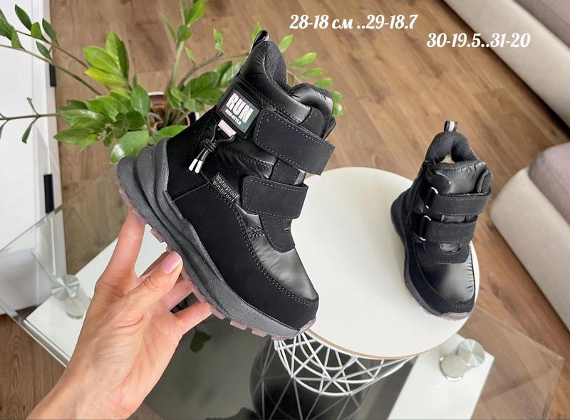 Зимние дутики от Том.m Как всегда в шикарном дизайне Внешне плащевка Внутри утепленные мехом 75 % Стелька также утеплена. Надежная подошва. Застежка на молнию и две липучки 28 размер 18 см 29 размер 18.7 см 30 размер 19.5 см
