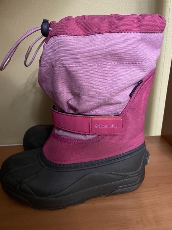 Ботинки Columbia оригинал. Высокое качество. Теплые и водонепроницаемые. Комфортная температура до -32С (Powderbug Plus II). Регулируются на подъеме (липучка) и сверху (затяжки). Общее состояние на фото. Р.34, стелька в валенке 22 см, без дефектов.