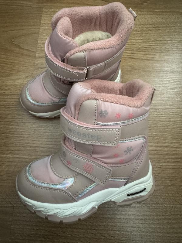 Зимние ботинки от Weestep. Водо и ветронепроницаемый термоматериал + качественная эко-кожа. Две липучки удобно фиксируют ножку. Густе набите хутро (100% овчинка). Надежные, выдерживают до -30°мороза Легкие в повседневном уходе, легко моются и быстро