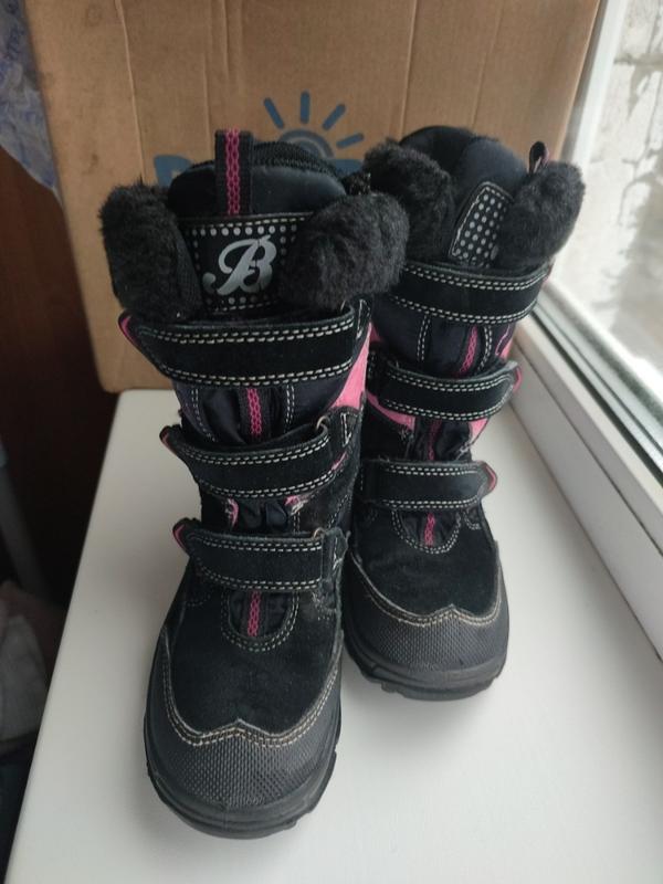 Состояние очень хорошее, зимние ботинки для девочки. Размер 28, по стельке 18 см. Ботинки высокие,спереди три липучки,с боку замочек для удобства. Утеплены натуральной офчиной,носок и пятка прорезиненные, чтобы не промокли ножки