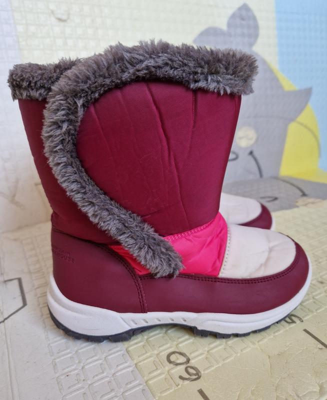 Очень теплые и яркие зимние сапоги на девочку. Удобные - на липучках. Размер - 33. Замеры: - длина стельки - 21 - длина подошвы - 24 - высота - 20 Стан идеален.