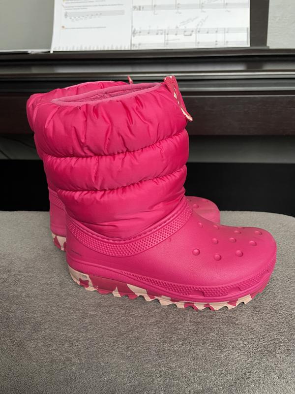 Зимние сапоги Крокс на дууужущие дужные морозы. Размер J2. Утеплитель подходит носить их до -20. Немного затертые (носили одну зиму, все на фото видно), но на качество и свойства это никоим образом не повлияло. Можна прати, чистити; я просто цим не займалась. 700 грн против новых за 2 тысячи.