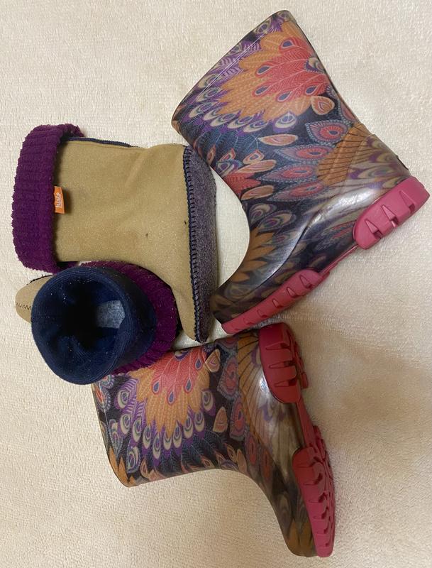 Чоботи резинові demar р. 22-23 вустілка валяночка 14 см для дівчинки з утепленим валяно...