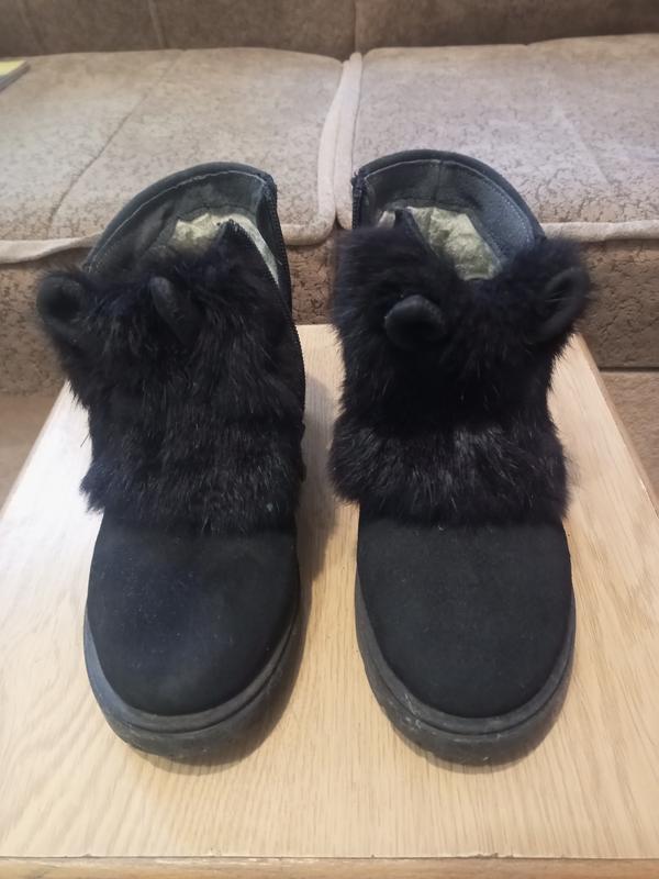 Красивые и удобные замшевые сапожки. Спереди вставки из натурального меха и симпатичные ушки)