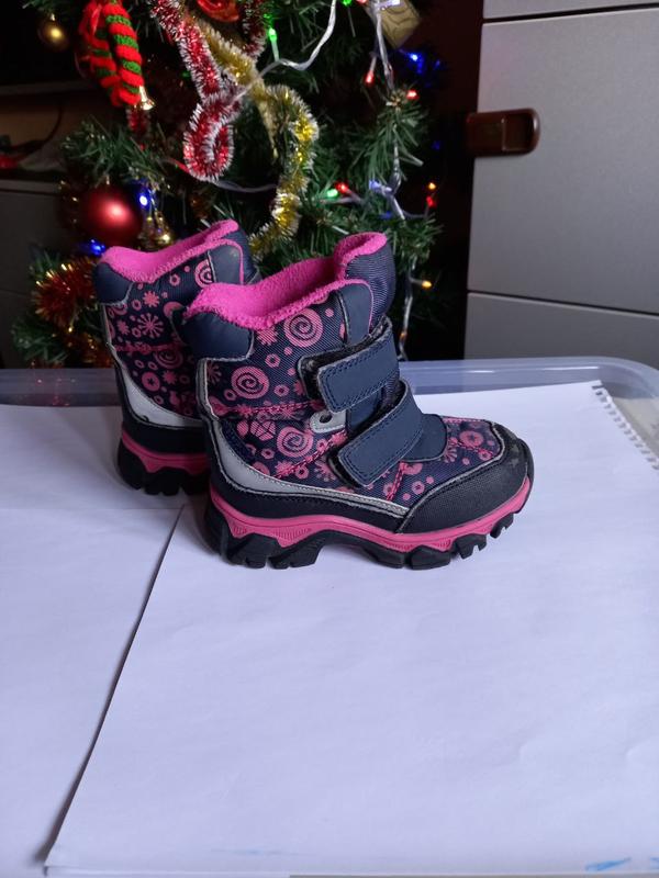 Термо чоботи торгова марка ТОМ М Теплі та легкі, непромокають. Верх: - штучна шкіра - водовідштовхувальний текстиль; - Термоефект; Усередині: набивна овчина; Підошва морозостійка протекторна; -Не ковзає! Не промокає, липучки добре тримають. З нюансів - зверху на носках і ззаду над п'яткою потріскалось покриття штучної шкіри, але основний шар міцний і не пропускає вологу чи холод. В ціну враховано. р.24 - устілка 15 см 100% передоплата