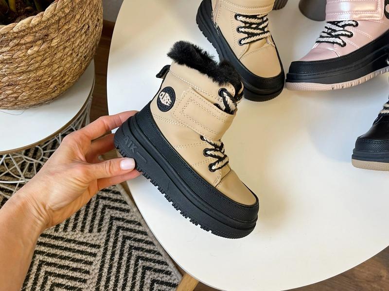 Дутики для девочек из новой коллекции Качество на высоте Верх качественная матовая эко кожа Внутри густой мех (60 %) Боковая застежка,шнурки,липучка Стильные и удобные.очень легкие 27 размер 17.5 см 28 размер 18.2 см наличие уточнять